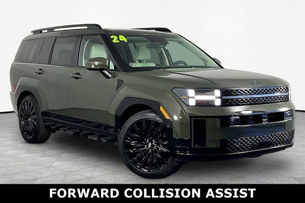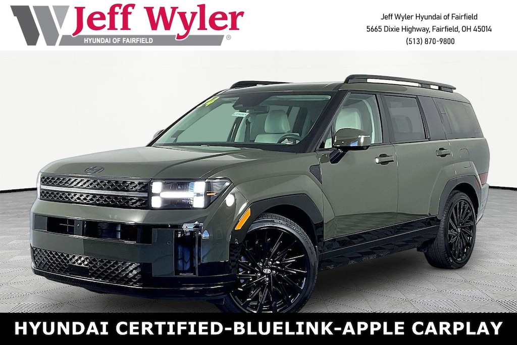CARFAX One-Owner. Jeff Wyler Hyundai of Fairfield is honored to offer this fantastic-looking 2024 Hyundai Santa Fe Calligraphy in Rockwood Green. Well equipped with: Option Group 01, AWD, Beige Leather, Android Auto, Apple CarPlay, CALL NOW FOR YOUR VIP APPOINTMENT 513-870-9800, FULLY SERVICED w/RECORDS, GUARANTEED FINANCING!! NO MATTER YOUR SITUATION WE CAN GET AN APPROVAL!!, THE #1 Volume dealer in the region! Come see why for yourself Today!!, WE PAY MORE FOR YOUR TRADE!!, 12 Speakers, 3rd row seats: bench, 4-Wheel Disc Brakes, ABS brakes, Air Conditioning, Alloy wheels, AM/FM radio: SiriusXM, Apple CarPlay & Android Auto, Auto High-beam Headlights, Auto-dimming Rear-View mirror, Automatic temperature control, Axle Ratio: 3.316, Brake assist, Bumpers: body-color, Carpeted Floor Mats, Delay-off headlights, Driver door bin, Driver vanity mirror, Dual front impact airbags, Dual front side impact airbags, Electronic Stability Control, Emergency communication system, Exterior Parking Camera Rear, Four wheel independent suspension, Front anti-roll bar, Front Bucket Seats, Front Center Armrest, Front dual zone A/C, Front reading lights, Fully automatic headlights, Garage door transmitter: HomeLink, Heads-Up Display, Heated & Ventilated Front Bucket Seats, Heated door mirrors, Heated front seats, Heated rear seats, Heated steering wheel, Illuminated entry, Knee airbag, Leather steering wheel, Low tire pressure warning, Memory seat, Navigation System, Occupant sensing airbag, Outside temperature display, Overhead airbag, Overhead console, Panic alarm, Passenger door bin, Passenger vanity mirror, Power door mirrors, Power driver seat, Power Liftgate, Power moonroof, Power passenger seat, Power steering, Power windows, Quilted Premium Nappa Leather Seat Trim, Radio: AM/FM/HD Bose Premium Audio System, Rain sensing wipers, Rear anti-roll bar, Rear side impact airbag, Rear window defroster, Rear window wiper, Remote keyless entry, Security system, Speed control, Speed-sensing steering, Split folding rear seat, Spoiler, Steering wheel mounted audio controls, Tachometer, Telescoping steering wheel, Tilt steering wheel, Tow Hitch, Traction control, Trip computer, Turn signal indicator mirrors, Variably intermittent wipers, Ventilated front seats, and Wheels: 21" x 8.5J Unique Dark Finish Alloy. TO CHECK ON THE AVAILABILITY OF THIS VEHICLE REACH OUT TO ONE OF OUR TEAM MEMBERS!! ALSO SHOP ONLINE AT https://www.jeffwylerhyundaioffairfield.com/ Proudly Serving: Cincinnati, Dayton, Columbus, Louisville, Lexington, Indianapolis, Hamilton, Florence, Alexandria, Beavercreek, Springdale, West Chester, Monroe, Fairfield, Kenwood, Newport and all of greater Cincinnati Ohio, Indiana, and Northern Kentucky.