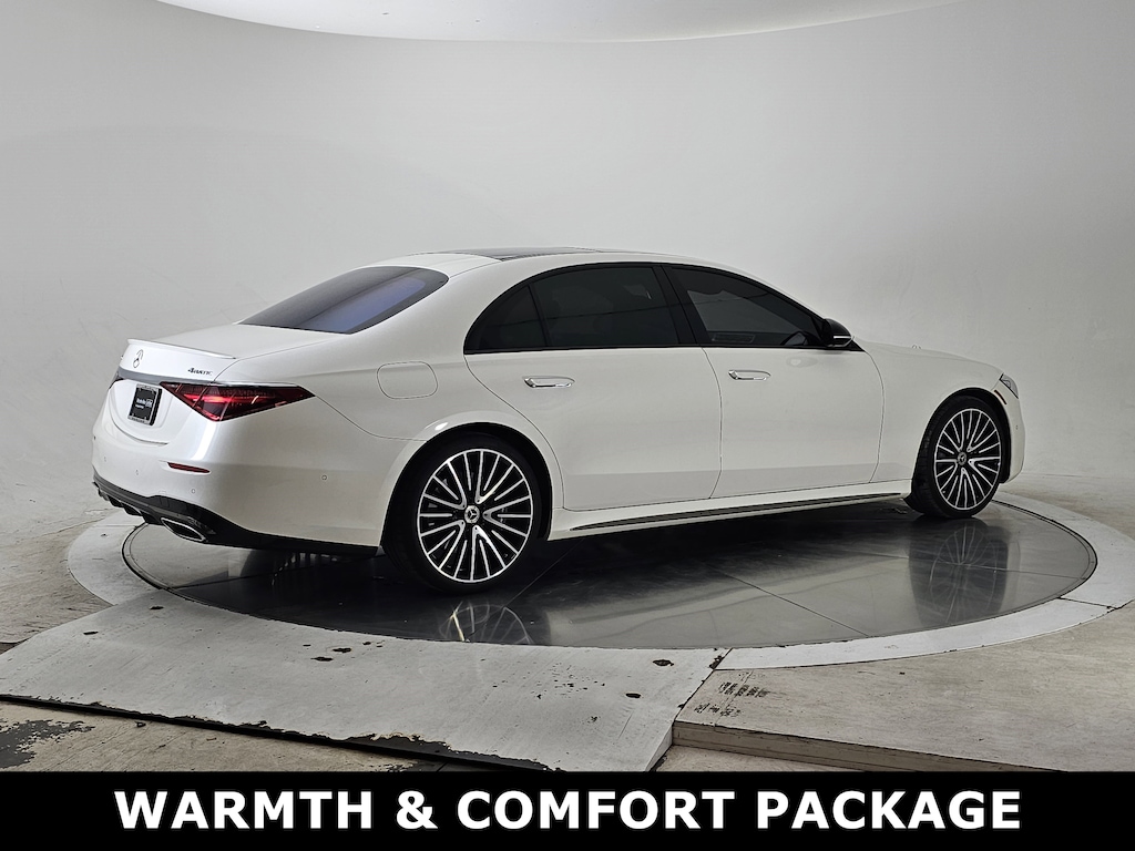 MANUFAKTUR Diamond White 2023 Mercedes-Benz S-Class S 580 4MATIC® 4MATIC® 9-Speed Automatic 4.0L V8 4.0L V8, 4MATIC®, Exclusive Sienna Brown/Black Leather, 4.5 Degree Rear Axle Steering, Active Ambient Lighting, AMG® Line Exterior, Front Energizing Package, Heated Front Armrests, Heated Rear Armrests, Heated Steering Wheel, Night Package, Power Rear Seats, Rear Deck Spoiler in Body Color, Rear Memory Seats, Rear Seat Heating, Sport Package Code, Ventilated Rear Seats, Warmth & Comfort Package, Wheels: 21" AMG® V-Multispoke w/Black Inlays.
