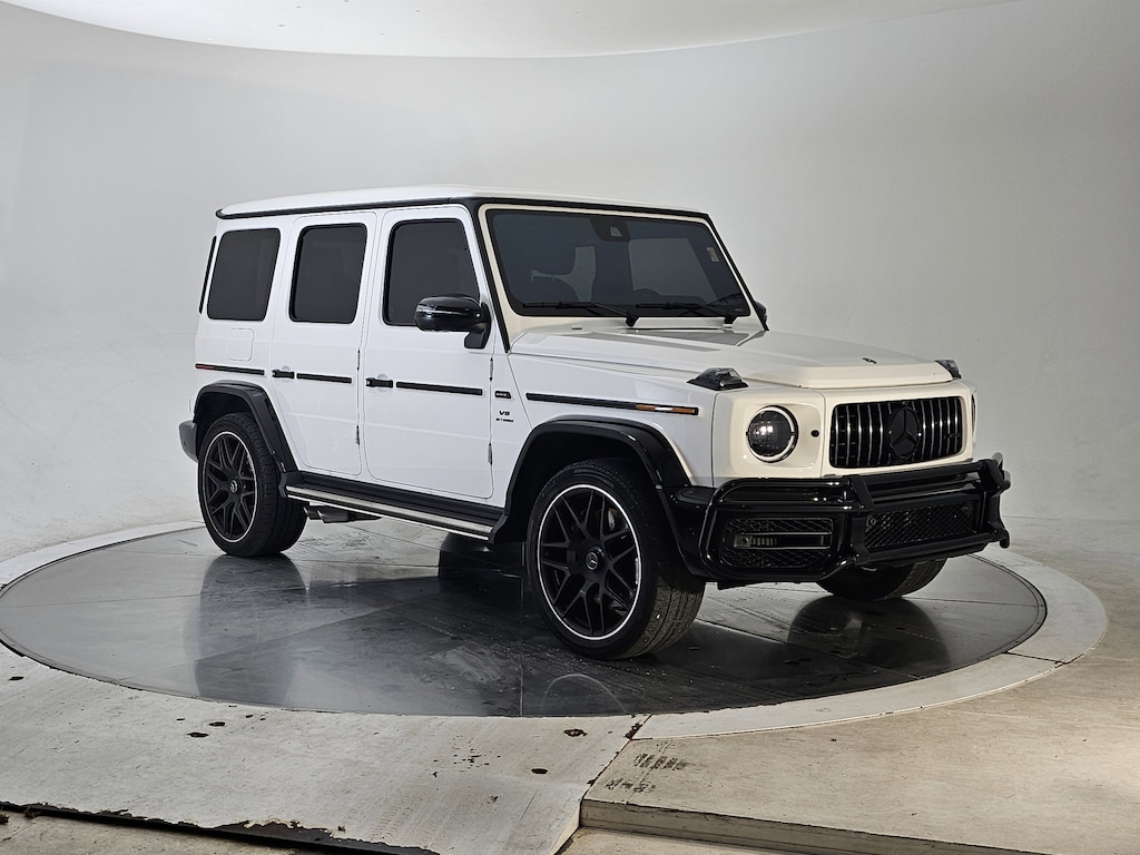 Polar White 2024 Mercedes-Benz G-Class G 63 AMG® 4MATIC® 9-Speed Automatic V8 AMG® Night Package (P56), AMG® Night Package Plus, Black Under Guard Protection, Brush Guard in Black, Exterior Lettering in Black, Exterior Mirrors Painted in Obsidian Black, Gunmetal Grey Front Grille, Mercedes-Benz Star in Black, Spare Wheel Cover in Obsidian Black, Wheel Arches & Bumpers in Black, Wheels: 22" AMG® Forged Cross-Spoke, Black.