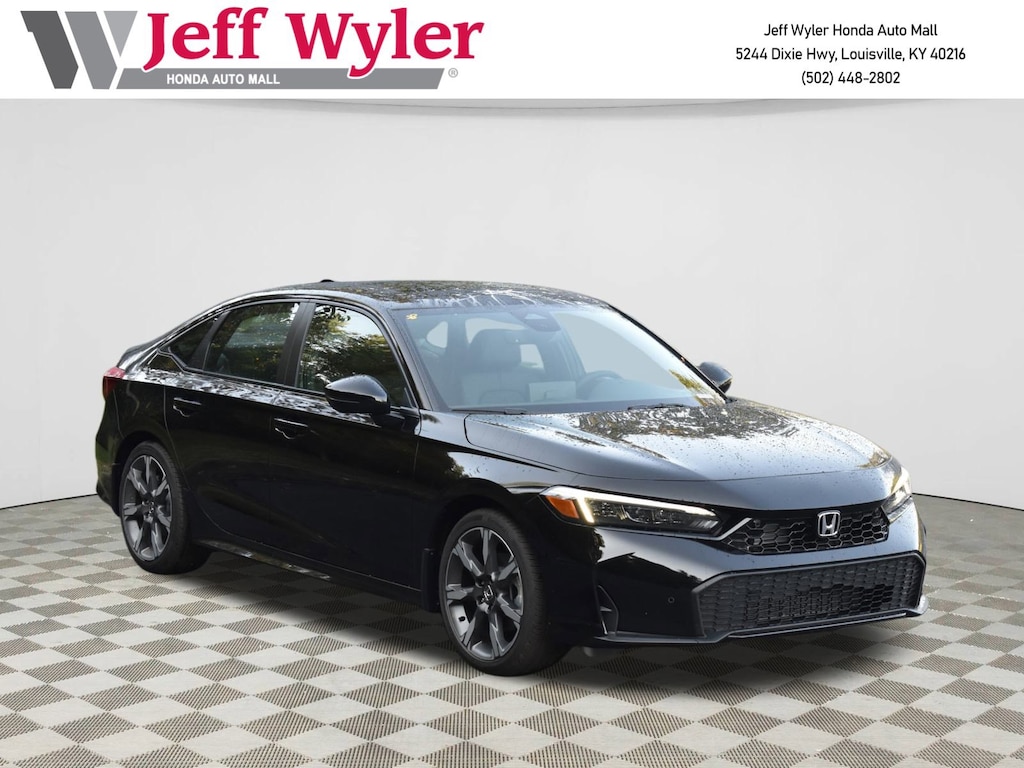 Jeff Wyler Honda Automall is proud to offer this good-looking 2026 Honda Civic Hybrid Sport Touring in Blue Lagoon Pearl. Well equipped with: 2.0L 16V DOHC, 12 Speakers, 4-Wheel Disc Brakes, ABS brakes, Adaptive Cruise Control: Adaptive Cruise Control (ACC) with Low-Speed Follow, Air Conditioning, Alloy wheels, AM/FM radio, Apple CarPlay/Android Auto, Auto High-beam Headlights, Auto-dimming Rear-View mirror, Automatic temperature control, Blind Spot Information (BSI) System warning, Bose Premium Sound System, Brake assist, Bumpers: body-color, Compass, Delay-off headlights, Driver door bin, Driver vanity mirror, Dual front impact airbags, Dual front side impact airbags, Electronic Stability Control, Emergency communication system: HondaLink, Exterior Parking Camera Rear, Four wheel independent suspension, Front anti-roll bar, Front Bucket Seats, Front Center Armrest, Front dual zone A/C, Front reading lights, Fully automatic headlights, Heated door mirrors, Heated Front Bucket Seats, Heated front seats, Illuminated entry, Knee airbag, Leather Shift Knob, Leather steering wheel, Leather-Trimmed Seat Trim, Low tire pressure warning, Navigation system: Google Maps, Occupant sensing airbag, Outside temperature display, Overhead airbag, Overhead console, Panic alarm, Passenger door bin, Passenger vanity mirror, Power door mirrors, Power driver seat, Power moonroof, Power passenger seat, Power steering, Power windows, Radio data system, Rain sensing wipers, Rear anti-roll bar, Rear seat center armrest, Rear side impact airbag, Rear window defroster, Remote keyless entry, Security system, Speed control, Speed-sensing steering, Split folding rear seat, Steering wheel mounted audio controls, Tachometer, Telescoping steering wheel, Tilt steering wheel, Traction control, Trip computer, Turn signal indicator mirrors, Variably intermittent wipers, and Wheels: 18" Alloy w/Matte Shark Gray Inserts. 50/47 City/Highway MPGWyler Family First Package Includes: NanoCure Appearance Protection: Exterior & Interior Chemical Sealant Applied to Protect Against Environmental Hazards (7 Year Warranty Coverage). Pulse- Rear end Collision Avoidance System Theft Deterrent Strategy gives you 5 Years of Coverage against vehicle Theft, Offering up to a $5,000 benefit.