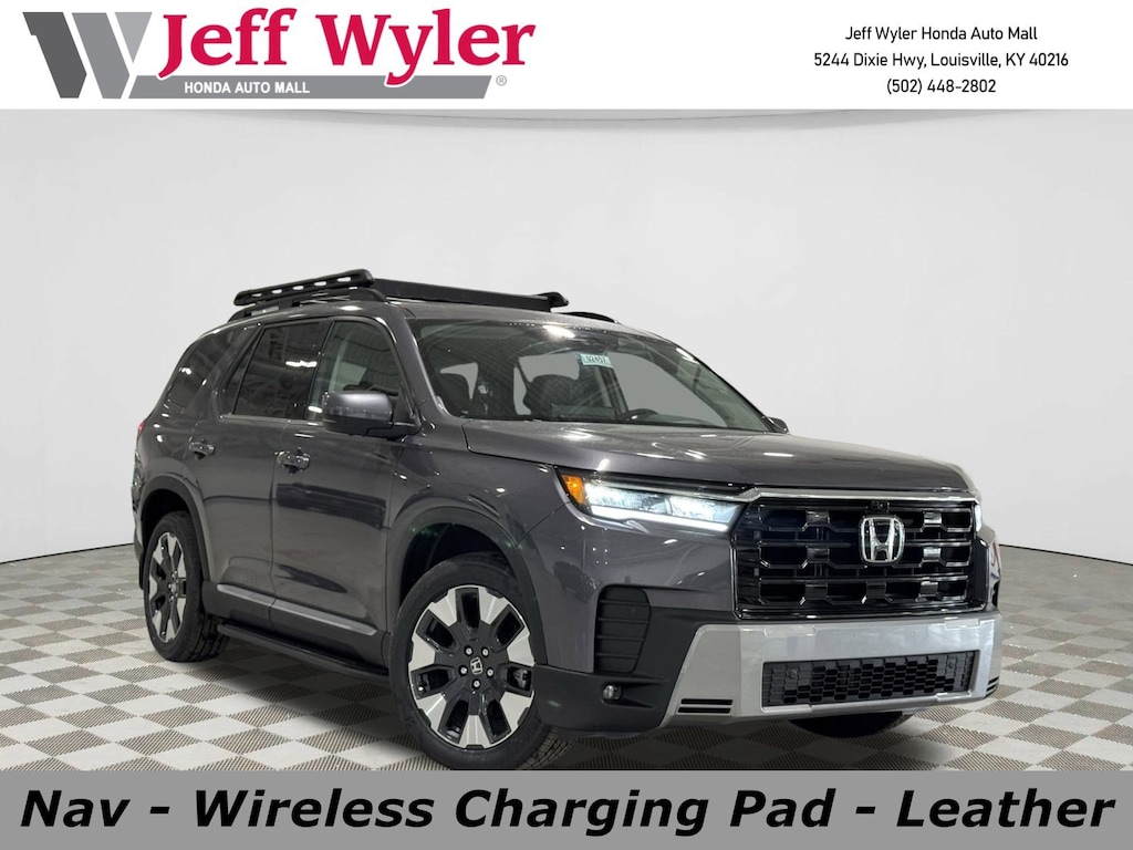 Jeff Wyler Honda Automall is delighted to offer this gorgeous-looking 2026 Honda Pilot Touring in Gv. Well equipped with: AWD, 12 Speakers, 3rd row seats: split-bench, 4-Wheel Disc Brakes, ABS brakes, Adaptive Cruise Control: Adaptive Cruise Control (ACC) with Low-Speed Follow, Air Conditioning, Alloy wheels, Apple CarPlay/Android Auto, Auto High-beam Headlights, Auto-dimming Rear-View mirror, Automatic temperature control, Blind Spot Information (BSI) System warning, Bose Premium Sound System, Brake assist, Bumpers: body-color, Compass, Delay-off headlights, Driver door bin, Driver vanity mirror, Dual front impact airbags, Dual front side impact airbags, Electronic Stability Control, Emergency communication system: HondaLink, Exterior Parking Camera Rear, Four wheel independent suspension, Front anti-roll bar, Front Bucket Seats, Front Center Armrest, Front dual zone A/C, Front fog lights, Front reading lights, Fully automatic headlights, Garage door transmitter: HomeLink, Heated door mirrors, Heated Front Bucket Seats, Heated front seats, HondaLink, HondaLink Subscription Services, Illuminated entry, Knee airbag, Lane departure: Lane Keeping Assist System (LKAS) active, Leather-Trimmed Seat Trim, Low tire pressure warning, Memory seat, Navigation system: Google Maps, Occupant sensing airbag, Outside temperature display, Overhead airbag, Overhead console, Panic alarm, Passenger door bin, Passenger vanity mirror, Power door mirrors, Power driver seat, Power Liftgate, Power moonroof, Power passenger seat, Power steering, Power windows, Radio data system, Rear air conditioning, Rear anti-roll bar, Rear reading lights, Rear seat center armrest, Rear window defroster, Rear window wiper, Reclining 3rd row seat, Remote keyless entry, Security system, Speed control, Speed-sensing steering, Speed-Sensitive Wipers, Split folding rear seat, Spoiler, Steering wheel mounted audio controls, Tachometer, Telescoping steering wheel, Tilt steering wheel, Traction control, Trip computer, Turn signal indicator mirrors, Variably intermittent wipers, and Wheels: 20" Shark Gray Machined Face with Black Lug Nuts.Wyler Family First Package Includes: NanoCure Appearance Protection: Exterior & Interior Chemical Sealant Applied to Protect Against Environmental Hazards (7 Year Warranty Coverage). Pulse- Rear end Collision Avoidance System Theft Deterrent Strategy gives you 5 Years of Coverage against vehicle Theft, Offering up to a $5,000 benefit.