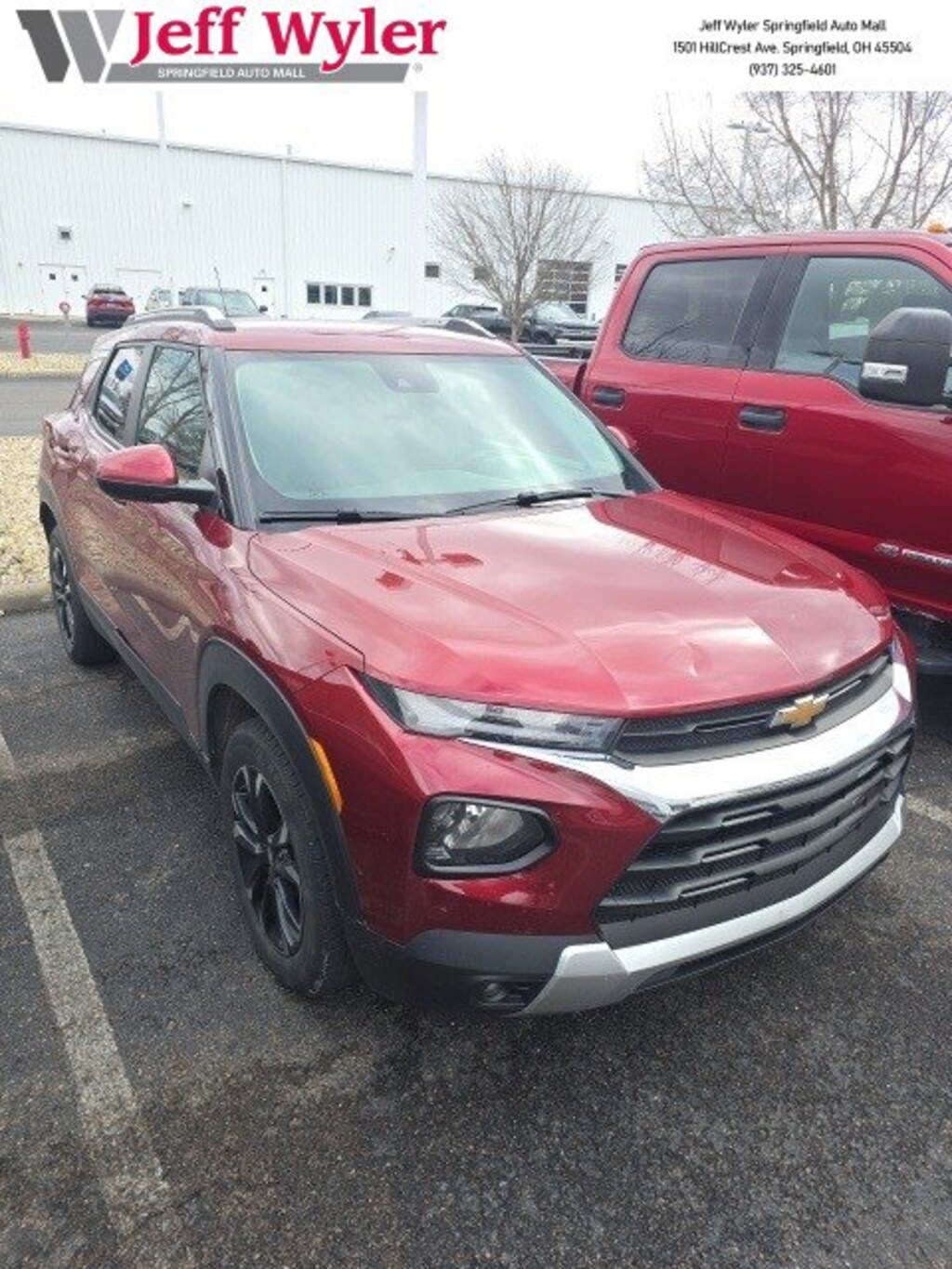 Jeff Wyler Springfield Auto Mall is pumped up to offer this beautiful 2023 Chevrolet TrailBlazer LT in Crimson Metallic. Well equipped with: Confidence II Package (Rear Park Assist), Convenience Package (1 Type-A & 1 Type-C USB Charging-Only Ports, 120-Volt Power Outlet, 8" Diagonal Color Touchscreen Display, Cabin Humidity Sensor, Driver & Front Passenger Illuminated Vanity Mirrors, Inside Rear-View Auto-Dimming Mirror, and Single-Zone Auto Climate Control Air Conditioning), Preferred Equipment Group 1LT, 2-Way Adjustable Front Head Restraints, 2-Way Power Driver Lumbar Seat Adjuster, 4-Way Manual Front Passenger Seat Adjuster, 4-Wheel Disc Brakes, 5.45 Axle Ratio, 6 Speakers, 6-Speaker Audio System Feature, 7" Diagonal Color Touchscreen, 8-Way Power Driver Seat Adjuster, ABS brakes, Air Conditioning, Alloy wheels, AM/FM radio: SiriusXM, Auto High-beam Headlights, Brake assist, Bumpers: body-color, Cloth Seat Trim, Compass, Delay-off headlights, Driver door bin, Driver vanity mirror, Dual front impact airbags, Dual front side impact airbags, Electronic Stability Control, Emergency communication system: OnStar and Chevrolet connected services capable, Exterior Parking Camera Rear, Flat-Folding Front Passenger Seatback, Front anti-roll bar, Front Bucket Seats, Front Center Armrest, Front fog lights, Front License Plate Bracket, Front reading lights, Front wheel independent suspension, Fully automatic headlights, Heated door mirrors, Heated Driver & Front Passenger Seats, Heated front seats, Illuminated entry, Knee airbag, Low tire pressure warning, Not Equipped w/Rear Park Assist, Occupant sensing airbag, Overhead airbag, Overhead console, Panic alarm, Passenger door bin, Passenger vanity mirror, Power door mirrors, Power driver seat, Power steering, Power windows, Radio data system, Radio: Chevrolet Infotainment 3 System, Rear side impact airbag, Rear window defroster, Rear window wiper, Remote keyless entry, Ride & Handling Suspension, Security system, SiriusXM Radio, Speed control, Split folding rear seat, Spoiler, Steering wheel mounted audio controls, Tachometer, Telescoping steering wheel, Tilt steering wheel, Traction control, Trip computer, Variably intermittent wipers, Wheels: 17" High Gloss Black Machined Aluminum, and Wireless Apple CarPlay/Android Auto. Ask about available certifications. Used vehicles 10 years of age or newer with less than 100,000 miles are eligible for the Wyler Assurance Program, but eligible vehicles must pass our reconditioning process and multi-point inspection. Provided the vehicle passes inspection, vehicles will be eligible for the 6 month/6,000 mile limited warranty. The 6 month/6,000 mile limited warranty is NOT available on AS-IS vehicles, wholesale vehicles, lease buyback/pass-thru vehicles or un-inspected vehicles. Note that this program can also apply to vehicles where the remaining factory coverage is less than 6 months or 6,000 miles. Please check the Federal Trade Commission (FTC) Buyers guide on the vehicle for full details as to whether or not warranty coverage may apply. Contact Dealer for additional details. The Wyler Assurance 6 month/6,000 Mile limited warranty ends 6 months from the date of the Retail Purchase Agreement (BUYERS ORDER) or when the vehicle's odometer registers 6,000 additional miles to the mileage listed on the BUYERS ORDER, whichever comes first. Your Deductible - The warranty holder on your contract pays the first $100 of each covered repair.