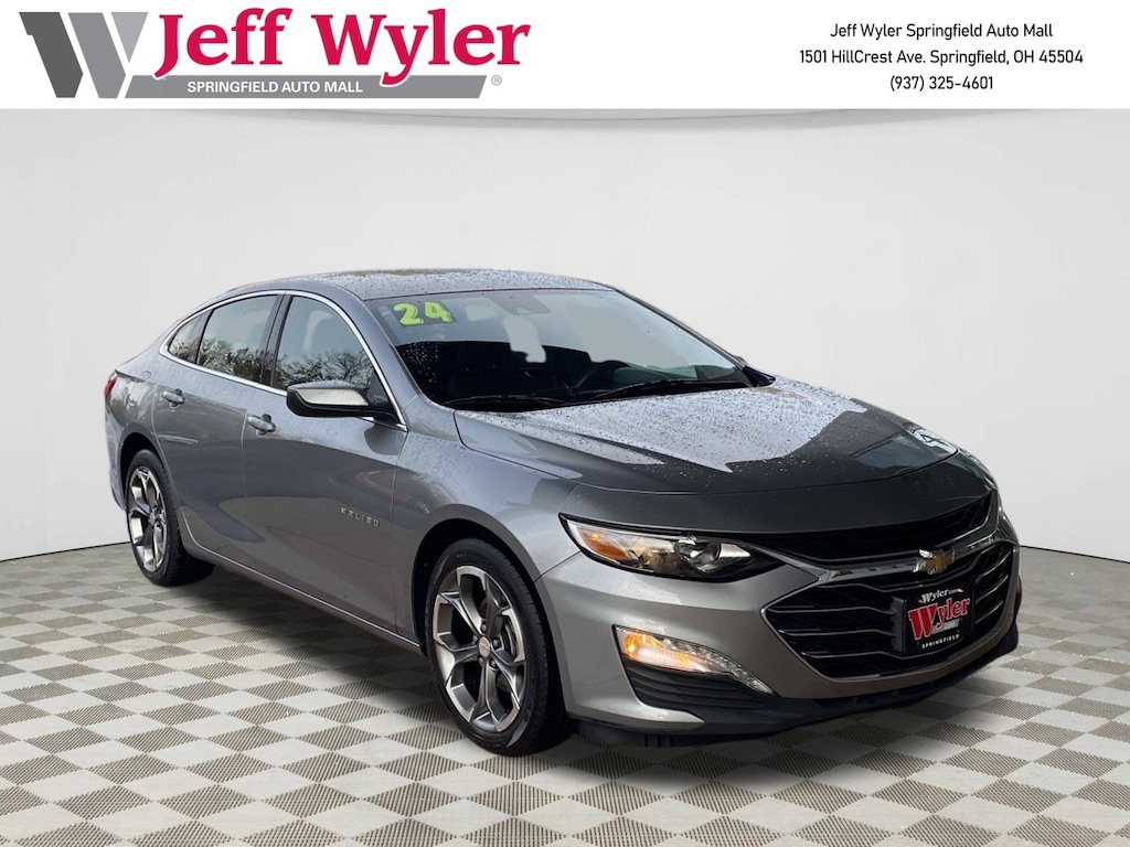 Jeff Wyler Springfield Auto Mall is proud to offer this gorgeous 2024 Chevrolet Malibu LT in Sterling Gray Metallic. Well equipped with: Preferred Equipment Group 1LT, 17" Aluminum Wheels, 18" Bright Machined Aluminum Wheels, 4-Wheel Disc Brakes, 6 Speakers, 6-Speaker Audio System Feature, 6-Way Manual Front Passenger Seat Adjuster, 8-Way Power Driver Seat Adjuster, ABS brakes, Air Conditioning, Alloy wheels, AM/FM radio: SiriusXM, Auto High-beam Headlights, Automatic temperature control, Brake assist, Bumpers: body-color, Compass, Delay-off headlights, Deleted 3 Years of Remote Access, Driver door bin, Driver vanity mirror, Dual front impact airbags, Dual front side impact airbags, Electronic Stability Control, Emergency communication system: OnStar and Chevrolet connected services capable, Exterior Parking Camera Rear, Four wheel independent suspension, Front anti-roll bar, Front Bucket Seats, Front Center Armrest, Front dual zone A/C, Front License Plate Bracket, Front reading lights, Fully automatic headlights, Heated door mirrors, Heated Driver & Front Passenger Seats, Heated front seats, Illuminated entry, Knee airbag, Low tire pressure warning, Occupant sensing airbag, Outside temperature display, Overhead airbag, Overhead console, Panic alarm, Passenger door bin, Passenger vanity mirror, Power door mirrors, Power Driver Lumbar Control Seat Adjuster, Power driver seat, Power steering, Power windows, Premium audio system: Chevrolet Infotainment 3 Plus, Premium Cloth Seat Trim, Radio data system, Radio: Chevrolet Infotainment 3 System, Rear anti-roll bar, Rear reading lights, Rear seat center armrest, Rear side impact airbag, Rear window defroster, Remote keyless entry, Road Emergency Tool Kit, Security system, SiriusXM, Speed control, Split folding rear seat, Steering wheel mounted audio controls, Tachometer, Telescoping steering wheel, Tilt steering wheel, Traction control, Trip computer, Variably intermittent wipers, Voltmeter, and Wireless Apple CarPlay/Android Auto. Ask about available certifications. Used vehicles 10 years of age or newer with less than 100,000 miles are eligible for the Wyler Assurance Program, but eligible vehicles must pass our reconditioning process and multi-point inspection. Provided the vehicle passes inspection, vehicles will be eligible for the 6 month/6,000 mile limited warranty. The 6 month/6,000 mile limited warranty is NOT available on AS-IS vehicles, wholesale vehicles, lease buyback/pass-thru vehicles or un-inspected vehicles. Note that this program can also apply to vehicles where the remaining factory coverage is less than 6 months or 6,000 miles. Please check the Federal Trade Commission (FTC) Buyers guide on the vehicle for full details as to whether or not warranty coverage may apply. Contact Dealer for additional details. The Wyler Assurance 6 month/6,000 Mile limited warranty ends 6 months from the date of the Retail Purchase Agreement (BUYERS ORDER) or when the vehicle's odometer registers 6,000 additional miles to the mileage listed on the BUYERS ORDER, whichever comes first. Your Deductible - The warranty holder on your contract pays the first $100 of each covered repair.