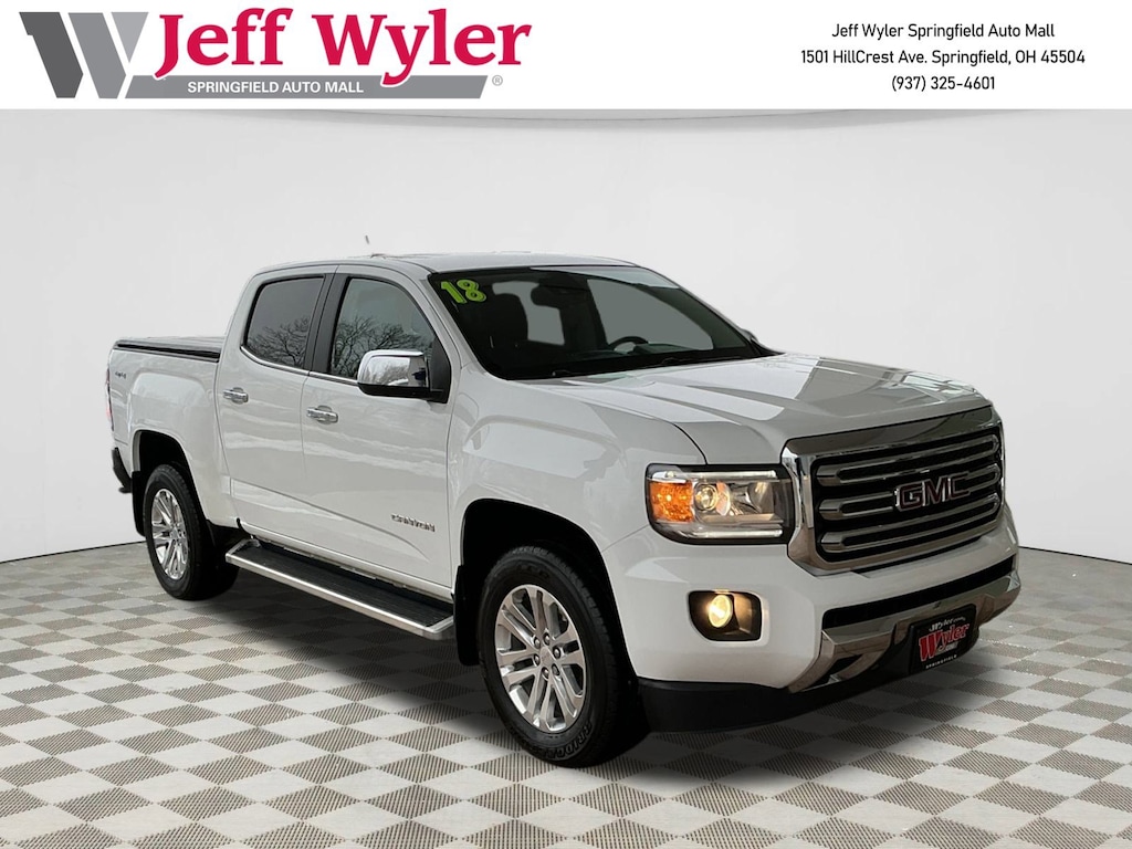 Jeff Wyler Springfield Auto Mall is pleased to offer this charming-looking 2018 GMC Canyon SLT in Summit White. Well equipped with: Driver Alert Package (Forward Collision Alert and Lane Departure Warning System), Preferred Equipment Group 4LT (Tow/Haul Mode and Trailering Assist Guideline Hitch Guidance), Trailering Package, 3.42 Rear Axle Ratio, 4-Way Power Front Passenger Seat Adjuster, 4-Wheel Disc Brakes, 6 Speakers, ABS brakes, Air Conditioning, Alloy wheels, AM/FM radio: SiriusXM, Auto-dimming Rear-View mirror, Automatic temperature control, Black Spray-On Bedliner w/GMC Logo, Bose Premium 7-Speaker Audio System Feature, Bumpers: body-color, Compass, Delay-off headlights, Driver 4-Way Power Seat Adjuster, Driver door bin, Driver vanity mirror, Dual front impact airbags, Dual front side impact airbags, Electronic Stability Control, Exterior Parking Camera Rear, Front anti-roll bar, Front Bucket Seats, Front Center Armrest, Front fog lights, Front License Plate Kit, Front reading lights, Front wheel independent suspension, Fully automatic headlights, Heated door mirrors, Heated Driver & Front Passenger Seats, Heated front seats, Illuminated entry, Leather-Appointed Seat Trim, Low tire pressure warning, Occupant sensing airbag, Outside temperature display, Overhead airbag, Overhead console, Panic alarm, Passenger door bin, Passenger vanity mirror, Power door mirrors, Power Driver Lumbar Control Seat Adjuster, Power driver seat, Power Passenger Lumbar Control Seat Adjuster, Power passenger seat, Power steering, Power windows, Premium audio system: GMC Infotainment System, Radio data system, Radio: AM/FM Stereo w/8" Color Touch Navigation, Radio: AM/FM Stereo w/8" Color Touch Screen, Rear reading lights, Rear seat center armrest, Rear step bumper, Rear window defroster, Remote keyless entry, Security system, SiriusXM Satellite Radio, Speed control, Speed-sensing steering, Steering wheel mounted audio controls, Tachometer, Telescoping steering wheel, Tilt steering wheel, Traction control, Trip computer, Variably intermittent wipers, and Wheels: 18" x 8.5" Polished Cast Aluminum. Ask about available certifications. Used vehicles 10 years of age or newer with less than 100,000 miles are eligible for the Wyler Assurance Program, but eligible vehicles must pass our reconditioning process and multi-point inspection. Provided the vehicle passes inspection, vehicles will be eligible for the 6 month/6,000 mile limited warranty. The 6 month/6,000 mile limited warranty is NOT available on AS-IS vehicles, wholesale vehicles, lease buyback/pass-thru vehicles or un-inspected vehicles. Note that this program can also apply to vehicles where the remaining factory coverage is less than 6 months or 6,000 miles. Please check the Federal Trade Commission (FTC) Buyers guide on the vehicle for full details as to whether or not warranty coverage may apply. Contact Dealer for additional details. The Wyler Assurance 6 month/6,000 Mile limited warranty ends 6 months from the date of the Retail Purchase Agreement (BUYERS ORDER) or when the vehicle's odometer registers 6,000 additional miles to the mileage listed on the BUYERS ORDER, whichever comes first. Your Deductible - The warranty holder on your contract pays the first $100 of each covered repair.