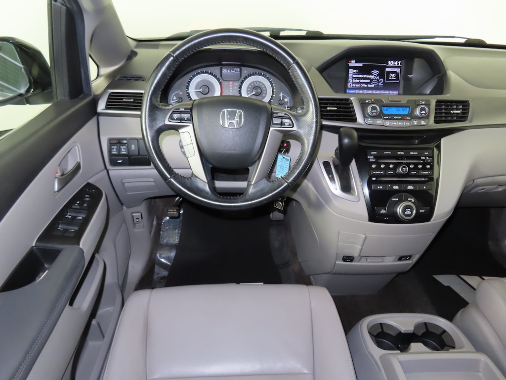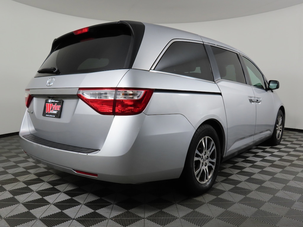 Jeff Wyler Honda of Colerain is honored to offer this attractive 2013 Honda Odyssey EX-L in Alabaster Silver Metallic. Well equipped with: 17" x 7" Alloy Wheels, 3rd row seats: split-bench, 4-Wheel Disc Brakes, 4.31 Axle Ratio, 7 Speakers, ABS brakes, Air Conditioning, Alloy wheels, AM/FM radio: XM, Anti-whiplash front head restraints, Auto-dimming Rear-View mirror, Automatic temperature control, Brake assist, Bumpers: body-color, CD player, Delay-off headlights, Driver door bin, Driver vanity mirror, Driver's Seat Mounted Armrest, Dual front impact airbags, Dual front side impact airbags, Electronic Stability Control, Exterior Parking Camera Rear, Four wheel independent suspension, Front anti-roll bar, Front Bucket Seats, Front dual zone A/C, Front reading lights, Fully automatic headlights, Garage door transmitter: HomeLink, Heated door mirrors, Heated Front Bucket Seats, Heated front seats, Illuminated entry, Leather Seat Trim, Leather Shift Knob, Low tire pressure warning, Occupant sensing airbag, Outside temperature display, Overhead airbag, Overhead console, Panic alarm, Passenger door bin, Passenger seat mounted armrest, Passenger vanity mirror, Power door mirrors, Power driver seat, Power Liftgate, Power moonroof, Power passenger seat, Power steering, Power windows, Radio data system, Rear air conditioning, Rear reading lights, Rear seat center armrest, Rear window defroster, Rear window wiper, Reclining 3rd row seat, Remote keyless entry, Security system, Speed control, Speed-sensing steering, Speed-Sensitive Wipers, Split folding rear seat, Spoiler, Steering wheel mounted audio controls, Tachometer, Telescoping steering wheel, Tilt steering wheel, Traction control, Trip computer, Variably intermittent wipers, and XM Radio.