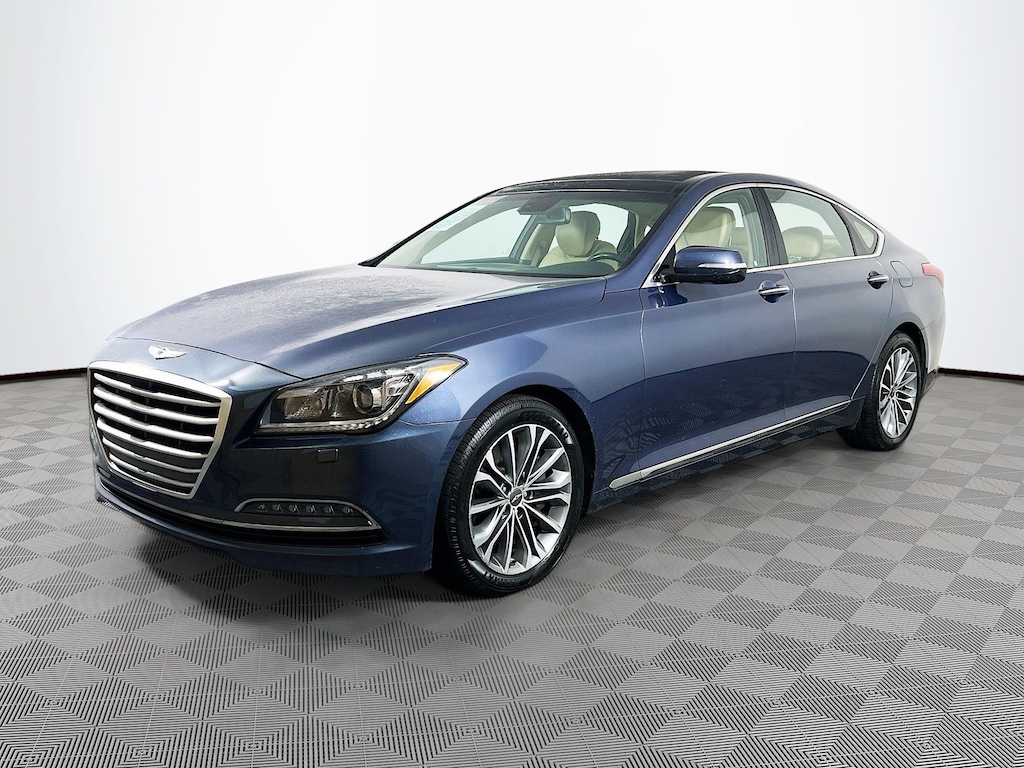 Jeff Wyler Eastgate Auto Mall is excited to offer this attractive-looking 2016 Hyundai Genesis 3.8 in Montecito Blue. Well equipped with: Signature Package 02 (Auto-Dimming Side Mirrors, Blind Spot Detection (BSD), Integrated Memory System (IMS), LED Fog Lamps, Power Heated/Cooled Front Bucket Seats, Power Rear Window Sunshade, Power Tilt-and-Slide Panoramic Sunroof, Power Tilt-and-Telescopic Steering Wheel, Radio: AM/FM/HD/SiriusXM/CD/DVD/MP3 Audio System, and Rearview Camera w/Parking Guidelines), 4-Wheel Disc Brakes, 7 Speakers, ABS brakes, Air Conditioning, Alloy wheels, AM/FM radio: SiriusXM, Anti-whiplash front head restraints, Auto-dimming Rear-View mirror, Automatic temperature control, Bodyside moldings, Brake assist, Bumpers: body-color, Carpeted Floor Mats (DISC), CD player, Compass, Delay-off headlights, Driver door bin, Driver vanity mirror, Dual front impact airbags, Dual front side impact airbags, Electronic Stability Control, Emergency communication system: Blue Link, Exterior Parking Camera Rear, Four wheel independent suspension, Front anti-roll bar, Front Bucket Seats, Front Center Armrest w/Storage, Front dual zone A/C, Front reading lights, Fully automatic headlights, Garage door transmitter: HomeLink, Heated door mirrors, Heated front seats, Heated rear seats, Heated steering wheel, High intensity discharge headlights: Bi-Xenon, Illuminated entry, Knee airbag, Leather Seating Surfaces, Leather steering wheel, Low tire pressure warning, Navigation System, Occupant sensing airbag, Option Group 02, Outside temperature display, Overhead airbag, Overhead console, Panic alarm, Passenger door bin, Passenger vanity mirror, Power door mirrors, Power driver seat, Power Heated Front Bucket Seats, Power passenger seat, Power steering, Power windows, Radio: AM/FM/SiriusXM/HD/CD/MP3 Audio System, Rain sensing wipers, Rear anti-roll bar, Rear Bumper Applique, Rear reading lights, Rear seat center armrest, Rear side impact airbag, Rear window defroster, Remote keyless entry, Reversible Cargo Tray, Security system, Speed control, Speed-sensing steering, Speed-Sensitive Wipers, Steering wheel mounted audio controls, Tachometer, Telescoping steering wheel, Tilt steering wheel, Traction control, Trip computer, Turn signal indicator mirrors, Variably intermittent wipers, Wheel Locks, and Wheels: 18 x 8.0J Alloy. Reviews: * Exceptional value; roomy and high-quality interior; hushed cabin; excellent crash test scores; long warranty coverage. Source: EdmundsAwards: * 2016 KBB.com Best Buy Awards Finalist * 2016 KBB.com 5-Year Cost to Own Awards Ask about available certifications. Used vehicles 10 years of age or newer with less than 100,000 miles are eligible for the Wyler Assurance Program, but eligible vehicles must pass our reconditioning process and multi-point inspection. Provided the vehicle passes inspection, vehicles will be eligible for the 6 month/6,000 mile limited warranty. The 6 month/6,000 mile limited warranty is NOT available on AS-IS vehicles, wholesale vehicles, lease buyback/pass-thru vehicles or un-inspected vehicles. Note that this program can also apply to vehicles where the remaining factory coverage is less than 6 months or 6,000 miles. Please check the Federal Trade Commission (FTC) Buyers guide on the vehicle for full details as to whether or not warranty coverage may apply. Contact Dealer for additional details. The Wyler Assurance 6 month/6,000 Mile limited warranty ends 6 months from the date of the Retail Purchase Agreement (BUYERS ORDER) or when the vehicle's odometer registers 6,000 additional miles to the mileage listed on the BUYERS ORDER, whichever comes first. Your Deductible - The warranty holder on your contract pays the first $100 of each covered repair.