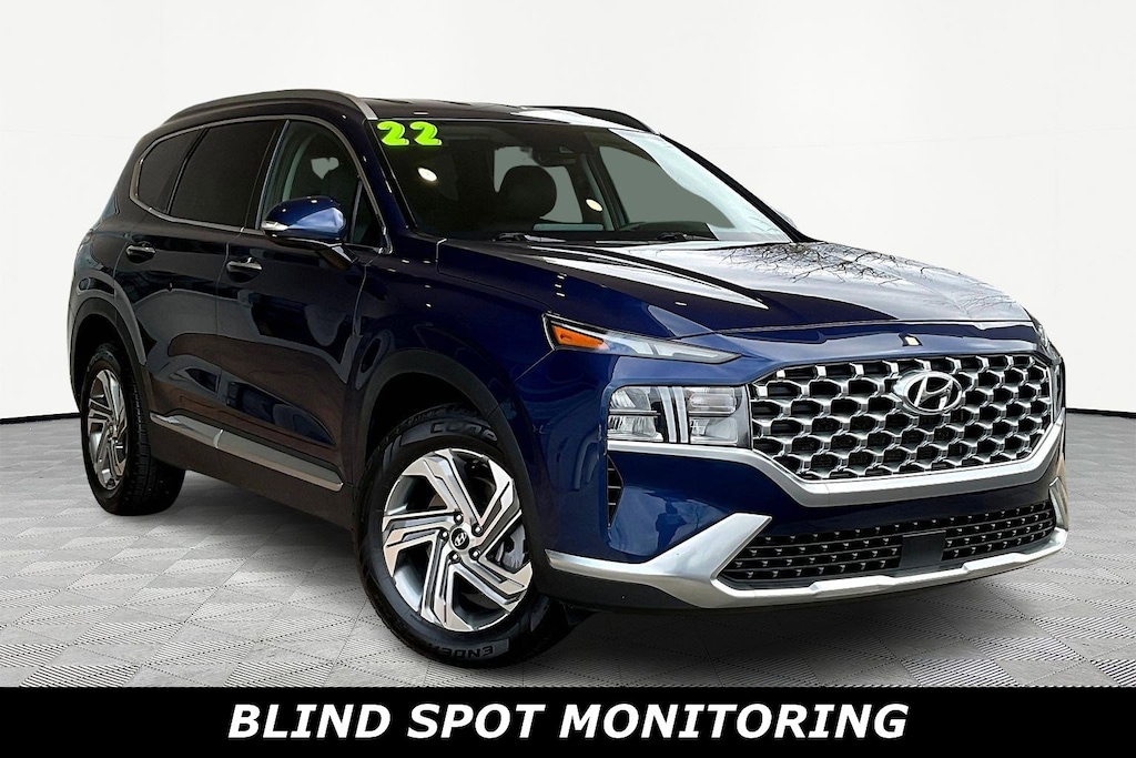 Jeff Wyler Springfield Auto Mall is pumped up to offer this good-looking 2022 Hyundai Santa Fe SEL in Stormy Sea. Well equipped with: Convenience Package (DISC) (12.3" LCD Multi-Information Display, Acoustic-Laminated Front Side Windows, Auto-Dimming Rear-View Mirror, Dual Automatic Temperature Control, Hands-Free Smart Liftgate w/Hands-Free Auto Open, Heated Side Mirrors w/Turn Signal Indicators, Hyundai Digital Key, Leather Wrapped Steering Wheel, Manual Rear Side Sunshades, Option Group 02, Power Release 2nd Row Seats, Puddle Lamps, and Ultrasonic Rear Occupant Alert), 18" x 7.5J Alloy Wheels, 4-Wheel Disc Brakes, 6 Speakers, ABS brakes, Air Conditioning, Alloy wheels, AM/FM radio: SiriusXM, Apple CarPlay & Android Auto, Auto High-beam Headlights, Axle Ratio: 3.798, Brake assist, Bumpers: body-color, Cargo Cover/Screen, Cargo Net, Cargo Tray, Carpeted Floor Mats, Delay-off headlights, Driver door bin, Driver vanity mirror, Dual front impact airbags, Dual front side impact airbags, Electronic Stability Control, Emergency communication system, Exterior Parking Camera Rear, Four wheel independent suspension, Front anti-roll bar, Front Bucket Seats, Front Center Armrest, Front reading lights, Fully automatic headlights, Heated door mirrors, Heated Front Bucket Seats, Heated front seats, Illuminated entry, Low tire pressure warning, Occupant sensing airbag, Outside temperature display, Overhead airbag, Overhead console, Panic alarm, Passenger door bin, Passenger vanity mirror, Power door mirrors, Power driver seat, Power steering, Power windows, Radio: AM/FM Display Audio, Rear anti-roll bar, Rear seat center armrest, Rear window defroster, Rear window wiper, Remote keyless entry, Security system, Speed control, Speed-sensing steering, Split folding rear seat, Spoiler, Steering wheel mounted audio controls, Tachometer, Telescoping steering wheel, Tilt steering wheel, Traction control, Trip computer, Variably intermittent wipers, and YES Essentials Stain-Resistant Cloth Seat Trim. Ask about available certifications. Used vehicles 10 years of age or newer with less than 100,000 miles are eligible for the Wyler Assurance Program, but eligible vehicles must pass our reconditioning process and multi-point inspection. Provided the vehicle passes inspection, vehicles will be eligible for the 6 month/6,000 mile limited warranty. The 6 month/6,000 mile limited warranty is NOT available on AS-IS vehicles, wholesale vehicles, lease buyback/pass-thru vehicles or un-inspected vehicles. Note that this program can also apply to vehicles where the remaining factory coverage is less than 6 months or 6,000 miles. Please check the Federal Trade Commission (FTC) Buyers guide on the vehicle for full details as to whether or not warranty coverage may apply. Contact Dealer for additional details. The Wyler Assurance 6 month/6,000 Mile limited warranty ends 6 months from the date of the Retail Purchase Agreement (BUYERS ORDER) or when the vehicle's odometer registers 6,000 additional miles to the mileage listed on the BUYERS ORDER, whichever comes first. Your Deductible - The warranty holder on your contract pays the first $100 of each covered repair.