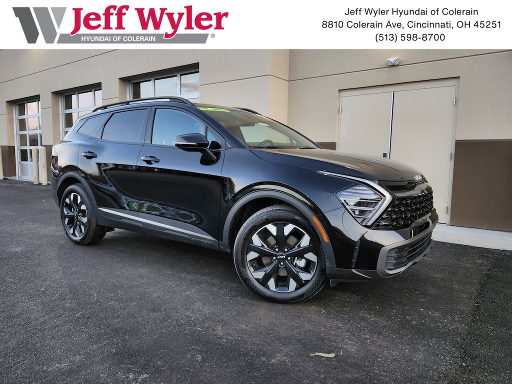 Jeff Wyler Superior Hyundai is very proud to offer this terrific-looking 2024 Kia Sportage X-Line in Ebony Black. Well equipped with: X-Line Premium Package (LED Interior Lighting, Panoramic Sunroof, and Smart Power Liftgate), AWD, 4-Wheel Disc Brakes, 6 Speakers, ABS brakes, Air Conditioning, Alloy wheels, AM/FM radio: SiriusXM, Apple CarPlay & Android Auto, Auto High-beam Headlights, Automatic temperature control, Axle Ratio: 3.648, Brake assist, Bumpers: body-color, Cargo Cover, Cargo Mat w/Seatback Protection, Cargo Net Hybrid w/o Audio, Carpet Floor Mats X-Line, Compass, Delay-off headlights, Driver door bin, Driver vanity mirror, Dual front impact airbags, Dual front side impact airbags, EC Mirror w/HomeLink, Electronic Stability Control, Emergency communication system, Four wheel independent suspension, Front anti-roll bar, Front Bucket Seats, Front Center Armrest, Front dual zone A/C, Fully automatic headlights, Heated door mirrors, Heated Front Bucket Seats, Heated front seats, Illuminated entry, Interior Lighting, Leather steering wheel, Low tire pressure warning, Navigation System, Occupant sensing airbag, Outside temperature display, Overhead airbag, Overhead console, Panic alarm, Passenger door bin, Passenger vanity mirror, Power door mirrors, Power driver seat, Power steering, Power windows, Premium Leatherette Seat Trim, Radio: AM/FM/HD Audio System, Rain sensing wipers, Rear anti-roll bar, Rear seat center armrest, Rear side impact airbag, Rear window defroster, Rear window wiper, Remote keyless entry, Security system, Speed control, Speed-sensing steering, Split folding rear seat, Spoiler, Steering wheel mounted audio controls, Tachometer, Telescoping steering wheel, Tilt steering wheel, Traction control, Trip computer, Turn signal indicator mirrors, Variably intermittent wipers, and Wheels: 19" Gloss Black Alloy. CARFAX One-Owner. This sales price excludes tax, title, and dealer fees. While every reasonable effort is made to ensure the accuracy of this information, we are not responsible for any errors or omissions contained on these pages. Used vehicles 10 years of age or newer with less than 100,000 miles are eligible for the Wyler Assurance Program, but eligible vehicles must pass our reconditioning process and multi-point inspection. Provided the vehicle passes inspection, vehicles will be eligible for the 6 month/6,000 mile limited warranty. The 6 month/6,000 mile limited warranty is NOT available on AS-IS vehicles, wholesale vehicles, lease buyback/pass-thru vehicles or un-inspected vehicles. Note that this program can also apply to vehicles where the remaining factory coverage is less than 6 months or 6,000 miles. Please check the Federal Trade Commission (FTC) Buyers guide on the vehicle for full details as to whether or not warranty coverage may apply. Contact Dealer for additional details. The Wyler Assurance 6 month/6,000 Mile limited warranty ends 6 months from the date of the Retail Purchase Agreement (BUYERS ORDER) or when the vehicle's odometer registers 6,000 additional miles to the mileage listed on the BUYERS ORDER, whichever comes first.Your Deductible - The warranty holder on your contract pays the first $100 of each covered repair.