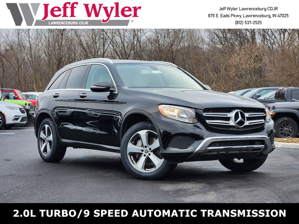 Jeff Wyler Chrysler Dodge Jeep of Lawrenceburg is pleased to offer this charming-looking 2018 Mercedes-Benz GLC GLC 300 in Black. 4-Wheel Disc Brakes, 6 Speakers, ABS brakes, Air Conditioning, Alloy wheels, AM/FM radio, Anti-whiplash front head restraints, Audio 20 w/Single CD, Auto tilt-away steering wheel, Auto-dimming door mirrors, Auto-dimming Rear-View mirror, Automatic temperature control, Axle Ratio: 3.27, Brake assist, Bumpers: body-color, CD player, Child-Seat-Sensing Airbag, Delay-off headlights, Driver door bin, Driver vanity mirror, Dual front impact airbags, Dual front side impact airbags, Electronic Stability Control, Emergency communication system: mbrace, Exterior Parking Camera Rear, Four wheel independent suspension, Front anti-roll bar, Front Bucket Seats, Front Center Armrest, Front dual zone A/C, Front reading lights, Fully automatic headlights, Garage door transmitter: Homelink, Genuine wood dashboard insert, Genuine wood door panel insert, Heated door mirrors, Illuminated entry, Knee airbag, Leather steering wheel, Low tire pressure warning, MB-Tex Upholstery, Memory seat, Occupant sensing airbag, Outside temperature display, Overhead airbag, Overhead console, Panic alarm, Passenger door bin, Passenger vanity mirror, Power door mirrors, Power driver seat, Power Liftgate, Power passenger seat, Power steering, Power windows, Premium audio system: COMAND®, Radio data system, Rain sensing wipers, Rear anti-roll bar, Rear fog lights, Rear reading lights, Rear seat center armrest, Rear window defroster, Rear window wiper, Remote keyless entry, Roof rack: rails only, Security system, Speed control, Speed-sensing steering, Split folding rear seat, Steering wheel memory, Steering wheel mounted audio controls, Tachometer, Telescoping steering wheel, Tilt steering wheel, Traction control, Trip computer, Turn signal indicator mirrors, Variably intermittent wipers, Weather band radio, and Wheels: 18" 5-Spoke (R31) Our PRE-OWNED vehicles are put through a rigorous 167- POINT QUALITY ASSURANCE INSPECTION along with an average amount of over $1,400.00 SPENT to recondition each vehicle so we can be sure to deliver you the highest quality vehicle like you deserve! ***ONLINE PRICE DOES NOT INCLUDE WYLER FAMILY FIRST PACKAGE*** Stop by 4136 Shelbyville Road to see for yourself, or give us a call @ 502-897-3151 to schedule your test drive! Ask about available certifications.