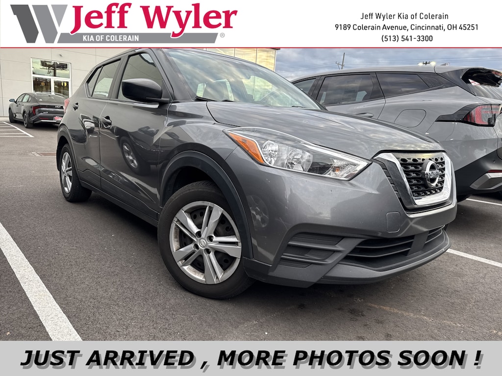 Jeff Wyler Kia of Colerain is pleased to offer this charming-looking 2020 Nissan Kicks S in Gun Metallic. 16" Steel Wheels w/Full Covers, 3.927 Axle Ratio, 6 Speakers, ABS brakes, Air Conditioning, AM/FM radio, Auto High-beam Headlights, Blind Spot Warning, Brake assist, Bumpers: body-color, Carpeted Floor Mats w/Cargo Mat, Center Armrest w/Storage, Cloth Seat Trim, Driver door bin, Driver vanity mirror, Driver's Seat Mounted Armrest, Dual front impact airbags, Dual front side impact airbags, Electronic Stability Control, Front anti-roll bar, Front Bucket Seats, Front reading lights, Front wheel independent suspension, Fully automatic headlights, Illuminated entry, Knee airbag, Low tire pressure warning, Occupant sensing airbag, Outside temperature display, Overhead airbag, Panic alarm, Passenger door bin, Passenger vanity mirror, Power door mirrors, Power steering, Power windows, Radio data system, Radio: AM/FM Audio System, Rear Parking Sensors, Rear reading lights, Rear side impact airbag, Rear window defroster, Rear window wiper, Remote keyless entry, Speed control, Splash Guards Grain (4 Piece), Split folding rear seat, Sport steering wheel, Steering wheel mounted audio controls, Tachometer, Telescoping steering wheel, Tilt steering wheel, Traction control, Trip computer, and Variably intermittent wipers Our PRE-OWNED vehicles are put through a rigorous 167- POINT QUALITY ASSURANCE INSPECTION along with an average amount of over $1,400.00 SPENT to recondition each vehicle so we can be sure to deliver you the highest quality vehicle like you deserve! ***ONLINE PRICE DOES NOT INCLUDE WYLER FAMILY FIRST PACKAGE***