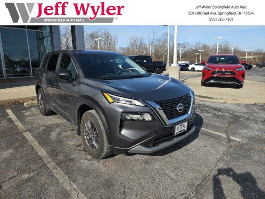 Jeff Wyler Springfield Auto Mall is very proud to offer this charming-looking 2023 Nissan Rogue S in Gun Metallic. Well equipped with: 17" Aluminum Alloy Wheels, 4 Speakers, 4-Wheel Disc Brakes, 5.604 Axle Ratio, ABS brakes, Air Conditioning, Alloy wheels, AM/FM Radio, AM/FM radio: SiriusXM, Auto High-beam Headlights, Black Splash Guards (Set of 4), Blind Spot Warning, Brake assist, Bumpers: body-color, Cloth Seat Trim, Delay-off headlights, Driver door bin, Driver vanity mirror, Dual front impact airbags, Dual front side impact airbags, Electronic Stability Control, First Aid Kit, Floor Mats w/1-Piece Cargo Area Protector, Four wheel independent suspension, Front anti-roll bar, Front Bucket Seats, Front Center Armrest, Front reading lights, Fully automatic headlights, Illuminated entry, Knee airbag, Low tire pressure warning, NissanConnect featuring Apple CarPlay and Android Auto, Occupant sensing airbag, Outside temperature display, Overhead airbag, Overhead console, Panic alarm, Passenger door bin, Passenger vanity mirror, Power door mirrors, Power steering, Power windows, Radio data system, Rear anti-roll bar, Rear Parking Sensors, Rear seat center armrest, Rear side impact airbag, Rear window defroster, Rear window wiper, Remote keyless entry, Speed control, Speed-Sensitive Wipers, Split folding rear seat, Spoiler, Steering wheel mounted audio controls, Tachometer, Telescoping steering wheel, Tilt steering wheel, Traction control, Trip computer, and Variably intermittent wipers. Ask about available certifications. Used vehicles 10 years of age or newer with less than 100,000 miles are eligible for the Wyler Assurance Program, but eligible vehicles must pass our reconditioning process and multi-point inspection. Provided the vehicle passes inspection, vehicles will be eligible for the 6 month/6,000 mile limited warranty. The 6 month/6,000 mile limited warranty is NOT available on AS-IS vehicles, wholesale vehicles, lease buyback/pass-thru vehicles or un-inspected vehicles. Note that this program can also apply to vehicles where the remaining factory coverage is less than 6 months or 6,000 miles. Please check the Federal Trade Commission (FTC) Buyers guide on the vehicle for full details as to whether or not warranty coverage may apply. Contact Dealer for additional details. The Wyler Assurance 6 month/6,000 Mile limited warranty ends 6 months from the date of the Retail Purchase Agreement (BUYERS ORDER) or when the vehicle's odometer registers 6,000 additional miles to the mileage listed on the BUYERS ORDER, whichever comes first. Your Deductible - The warranty holder on your contract pays the first $100 of each covered repair.