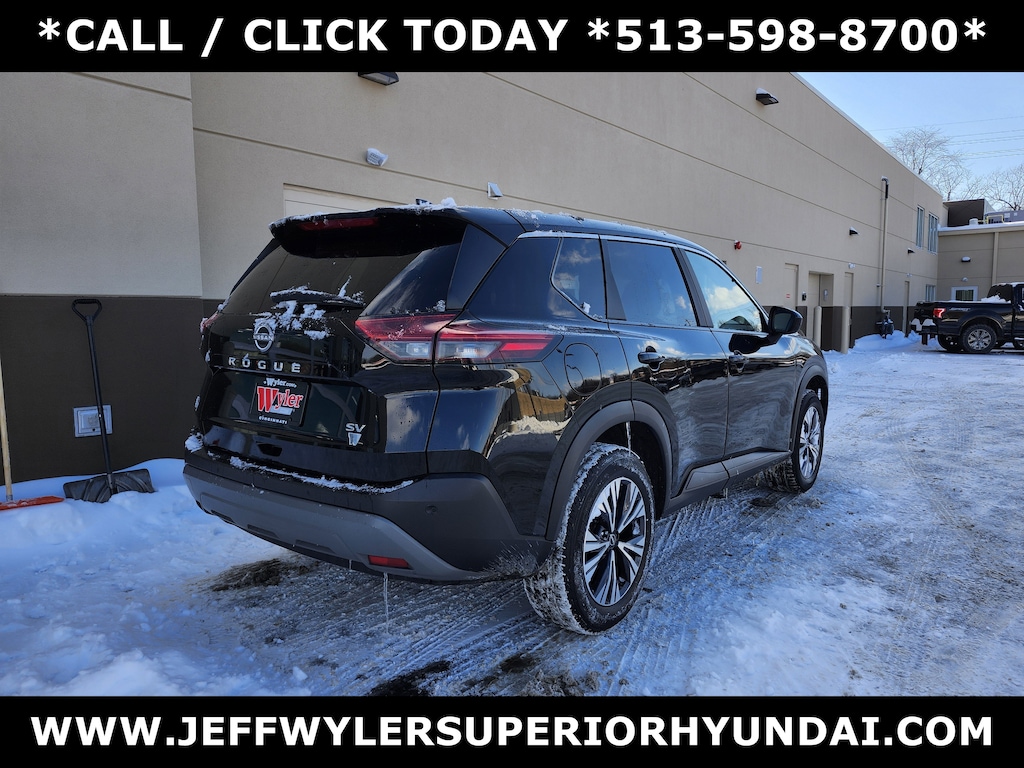 Jeff Wyler Superior Hyundai is pumped up to offer this fantastic 2023 Nissan Rogue SV in Super Black. Well equipped with: 18" Aluminum Alloy Wheels, 4-Wheel Disc Brakes, 5.604 Axle Ratio, 6 Speakers, ABS brakes, Air Conditioning, Alloy wheels, AM/FM Radio, AM/FM radio: SiriusXM, Auto High-beam Headlights, Automatic temperature control, Brake assist, Bumpers: body-color, Cloth Seat Trim, Delay-off headlights, Driver door bin, Driver vanity mirror, Dual front impact airbags, Dual front side impact airbags, Electronic Stability Control, Emergency communication system: NissanConnect Services, Four wheel independent suspension, Front anti-roll bar, Front Bucket Seats, Front Center Armrest, Front dual zone A/C, Front reading lights, Fully automatic headlights, Heated door mirrors, Illuminated entry, Knee airbag, Low tire pressure warning, NissanConnect featuring Apple CarPlay and Android Auto, Occupant sensing airbag, Outside temperature display, Overhead airbag, Overhead console, Panic alarm, Passenger door bin, Passenger vanity mirror, Power door mirrors, Power driver seat, Power steering, Power windows, Radio data system, Rear anti-roll bar, Rear Parking Sensors, Rear seat center armrest, Rear side impact airbag, Rear window defroster, Rear window wiper, Remote keyless entry, Speed control, Speed-Sensitive Wipers, Split folding rear seat, Spoiler, Steering wheel mounted audio controls, Tachometer, Telescoping steering wheel, Tilt steering wheel, Traction control, Trip computer, and Variably intermittent wipers. CARFAX One-Owner. This sales price excludes tax, title, and dealer fees. While every reasonable effort is made to ensure the accuracy of this information, we are not responsible for any errors or omissions contained on these pages. Used vehicles 10 years of age or newer with less than 100,000 miles are eligible for the Wyler Assurance Program, but eligible vehicles must pass our reconditioning process and multi-point inspection. Provided the vehicle passes inspection, vehicles will be eligible for the 6 month/6,000 mile limited warranty. The 6 month/6,000 mile limited warranty is NOT available on AS-IS vehicles, wholesale vehicles, lease buyback/pass-thru vehicles or un-inspected vehicles. Note that this program can also apply to vehicles where the remaining factory coverage is less than 6 months or 6,000 miles. Please check the Federal Trade Commission (FTC) Buyers guide on the vehicle for full details as to whether or not warranty coverage may apply. Contact Dealer for additional details. The Wyler Assurance 6 month/6,000 Mile limited warranty ends 6 months from the date of the Retail Purchase Agreement (BUYERS ORDER) or when the vehicle's odometer registers 6,000 additional miles to the mileage listed on the BUYERS ORDER, whichever comes first.Your Deductible - The warranty holder on your contract pays the first $100 of each covered repair.