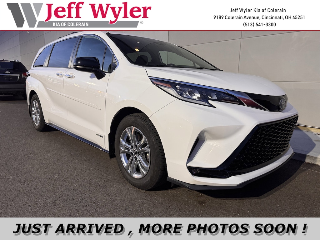 Jeff Wyler Kia of Colerain is pumped up to offer this outstanding 2021 Toyota Sienna XSE in White. 18" Metallic Alloy Wheels, 3rd row seats: split-bench, 4-Wheel Disc Brakes, 8 Speakers, ABS brakes, Air Conditioning, Alloy wheels, AM/FM radio: SiriusXM, Apple CarPlay/Android Auto, Auto High-beam Headlights, Auto-dimming door mirrors, Auto-dimming Rear-View mirror, Automatic temperature control, Axle Ratio: TBA, Brake assist, Bumpers: body-color, Compass, Delay-off headlights, Door auto-latch, Driver door bin, Driver vanity mirror, Driver's Seat Mounted Armrest, Dual front impact airbags, Dual front side impact airbags, Electronic Stability Control, Emergency communication system: Safety Connect with 3-year trial, Exterior Parking Camera Rear, Four wheel independent suspension, Front anti-roll bar, Front Bucket Seats, Front dual zone A/C, Front fog lights, Front Heated Bucket Seats, Front reading lights, Fully automatic headlights, Garage door transmitter: HomeLink, Heated door mirrors, Heated front seats, Illuminated entry, Knee airbag, Lane Departure Warning System, Leather Shift Knob, Leather steering wheel, Low tire pressure warning, Navigation System, Occupant sensing airbag, Outside temperature display, Overhead airbag, Overhead console, Panic alarm, Passenger door bin, Passenger seat mounted armrest, Passenger vanity mirror, Power door mirrors, Power driver seat, Power Liftgate, Power moonroof, Power passenger seat, Power steering, Power windows, Radio data system, Radio: Premium Audio, Rear air conditioning, Rear anti-roll bar, Rear dual zone A/C, Rear reading lights, Rear side impact airbag, Rear window defroster, Rear window wiper, Reclining 3rd row seat, Remote keyless entry, SofTex Seat Trim, Speed control, Speed-sensing steering, Split folding rear seat, Spoiler, Steering wheel mounted audio controls, Tachometer, Telescoping steering wheel, Tilt steering wheel, Traction control, Trip computer, Turn signal indicator mirrors, and Variably intermittent wipers Our PRE-OWNED vehicles are put through a rigorous 167- POINT QUALITY ASSURANCE INSPECTION along with an average amount of over $1,400.00 SPENT to recondition each vehicle so we can be sure to deliver you the highest quality vehicle like you deserve! ***ONLINE PRICE DOES NOT INCLUDE WYLER FAMILY FIRST PACKAGE***